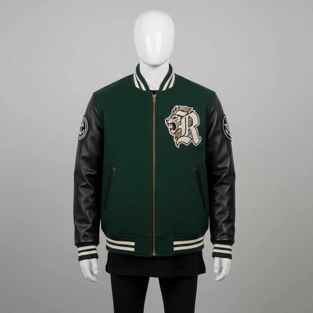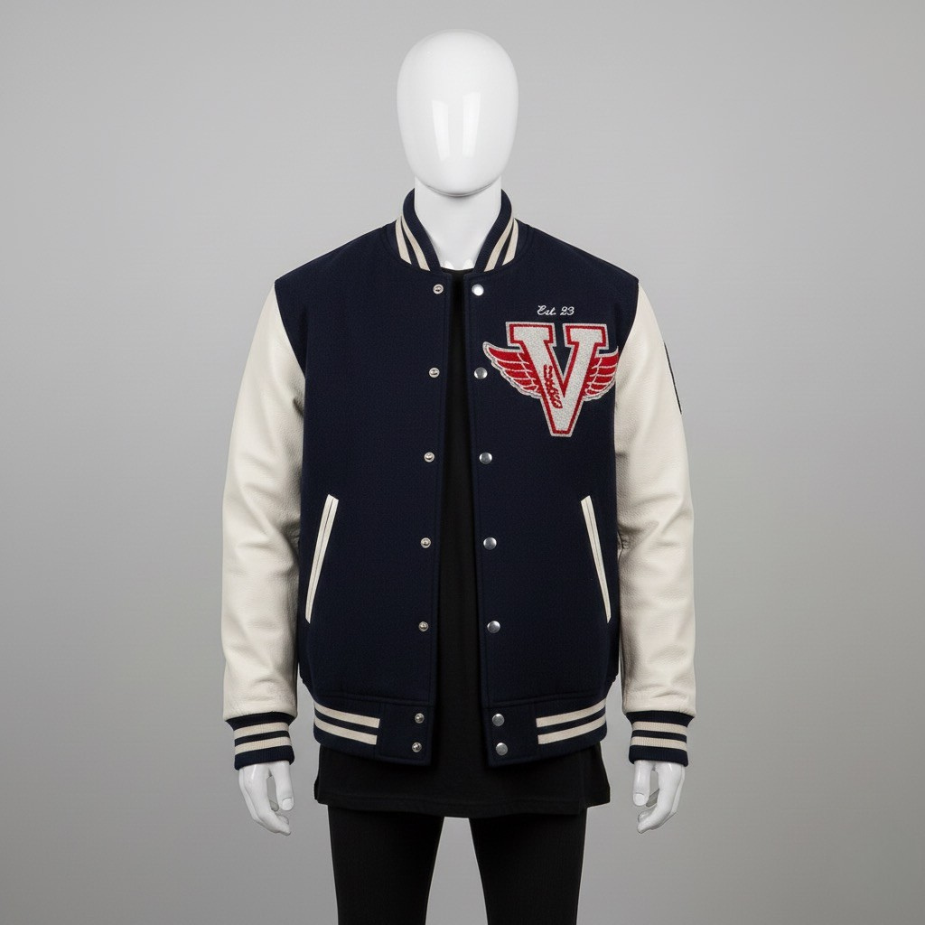 Choose from premium fabrics like leather, wool, cotton, suede, denim, fleece, satin, and more. Pick the perfect colors, sleeves, and closures to match your style. We guide you every step of the way to create your custom varsity jacket.
