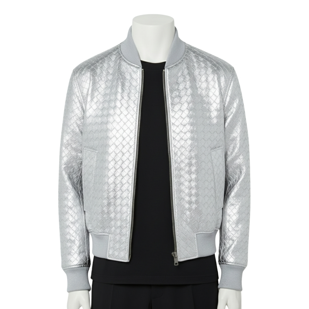 ARTISAN SILVER WOVEN LEATHER BOMBER JACKET | Woven Leather Edition