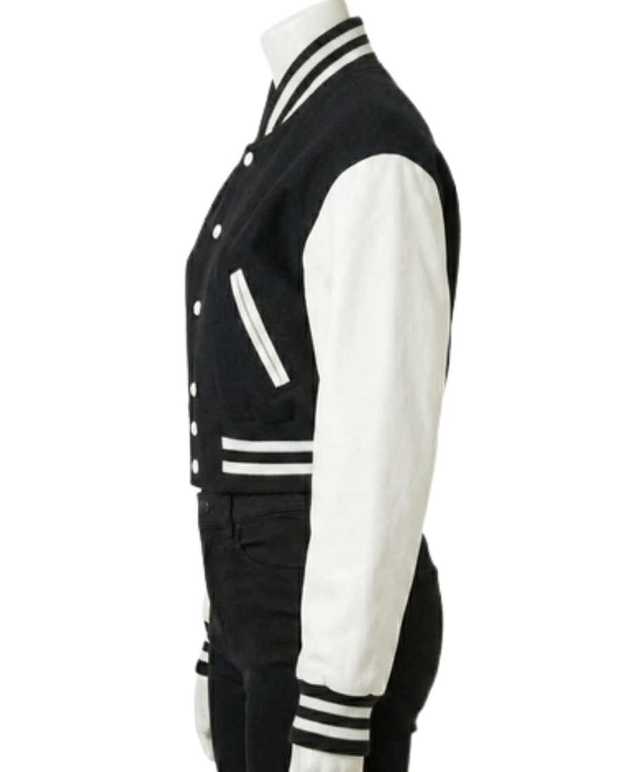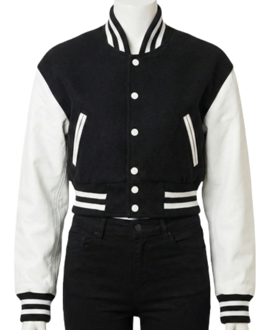 BLACK AND WHITE VARSITY JACKET WOMEN | HANDMADE LUXURY