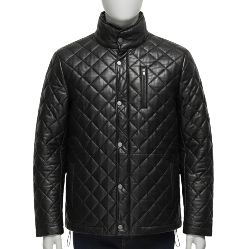 LEATHER QUILTED PUFFER JACKET MENS FASHION