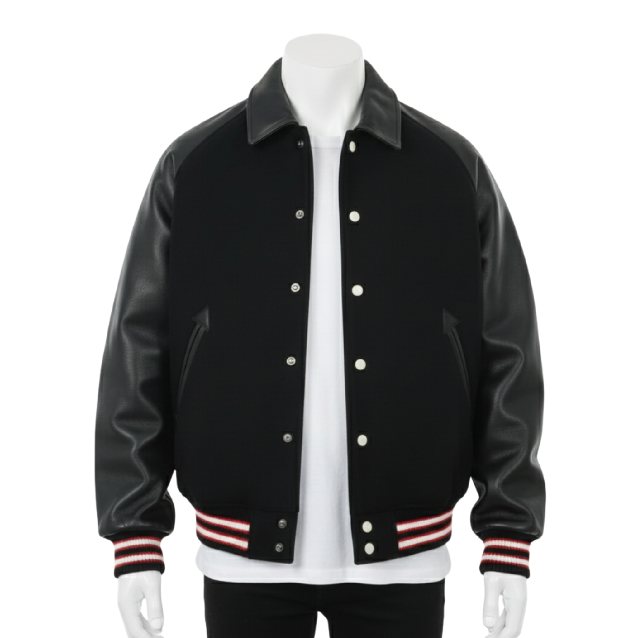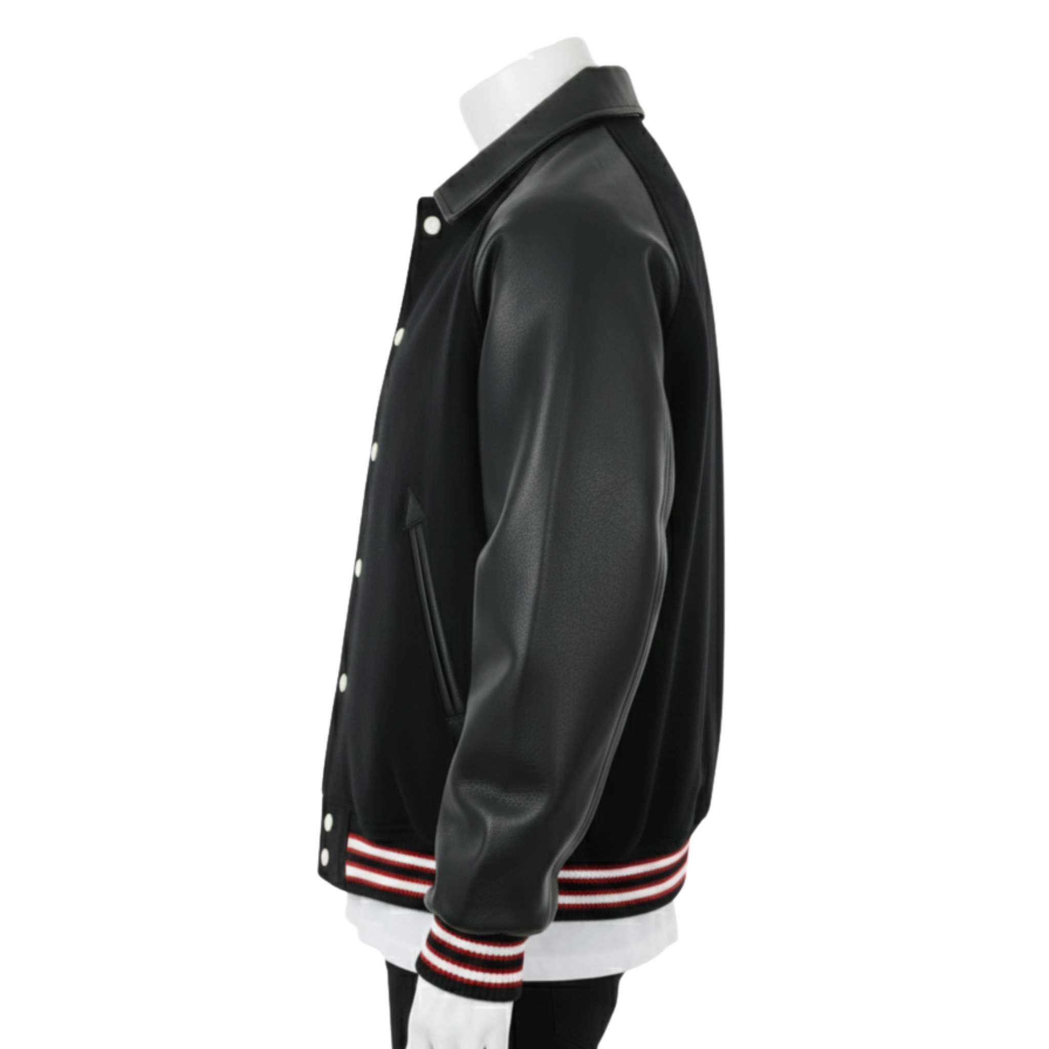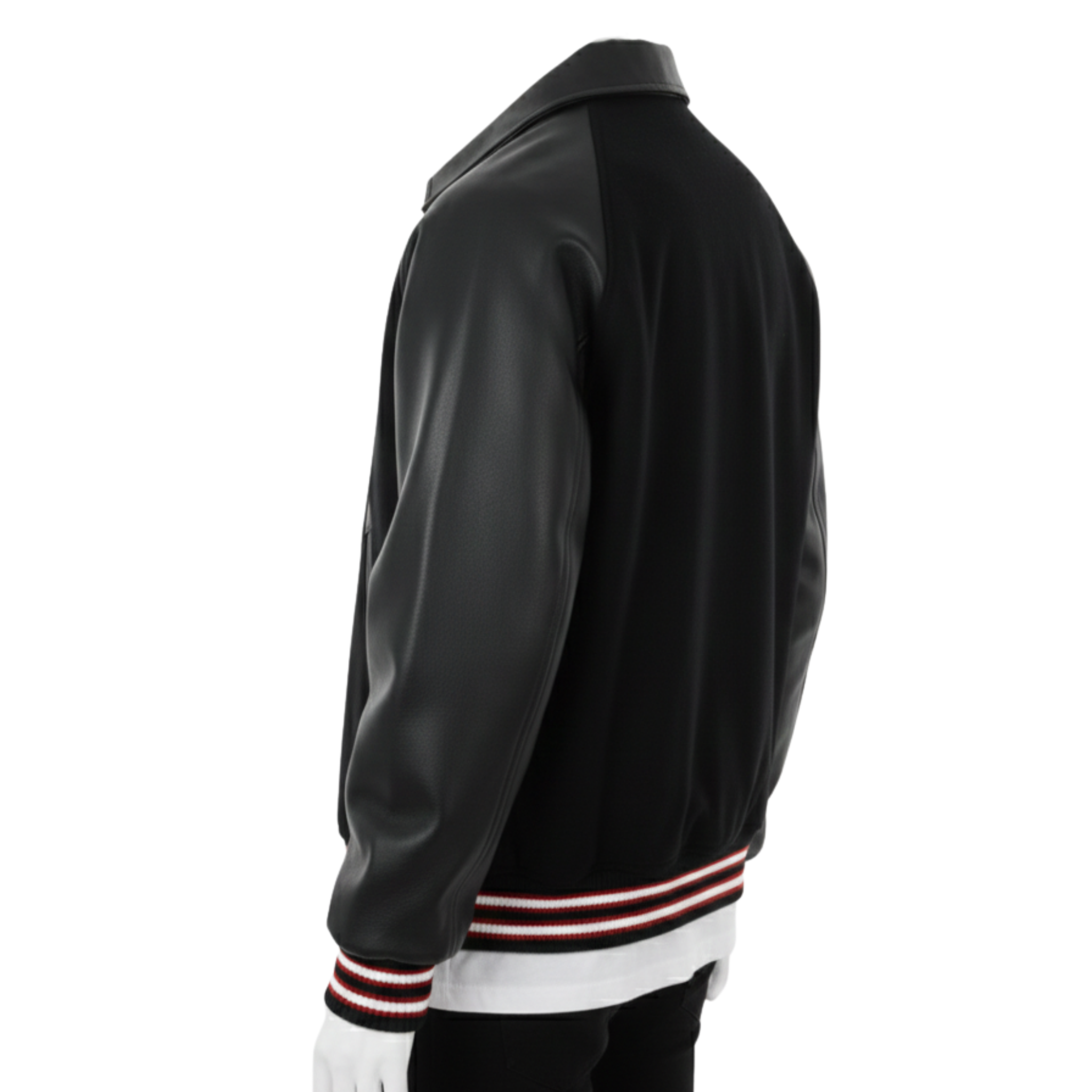 BLACK WOOL AND LEATHER VARSITY JACKET | HANDMADE
