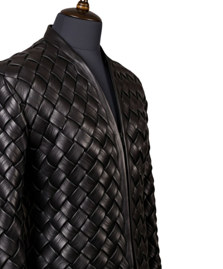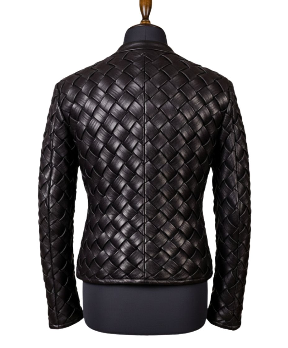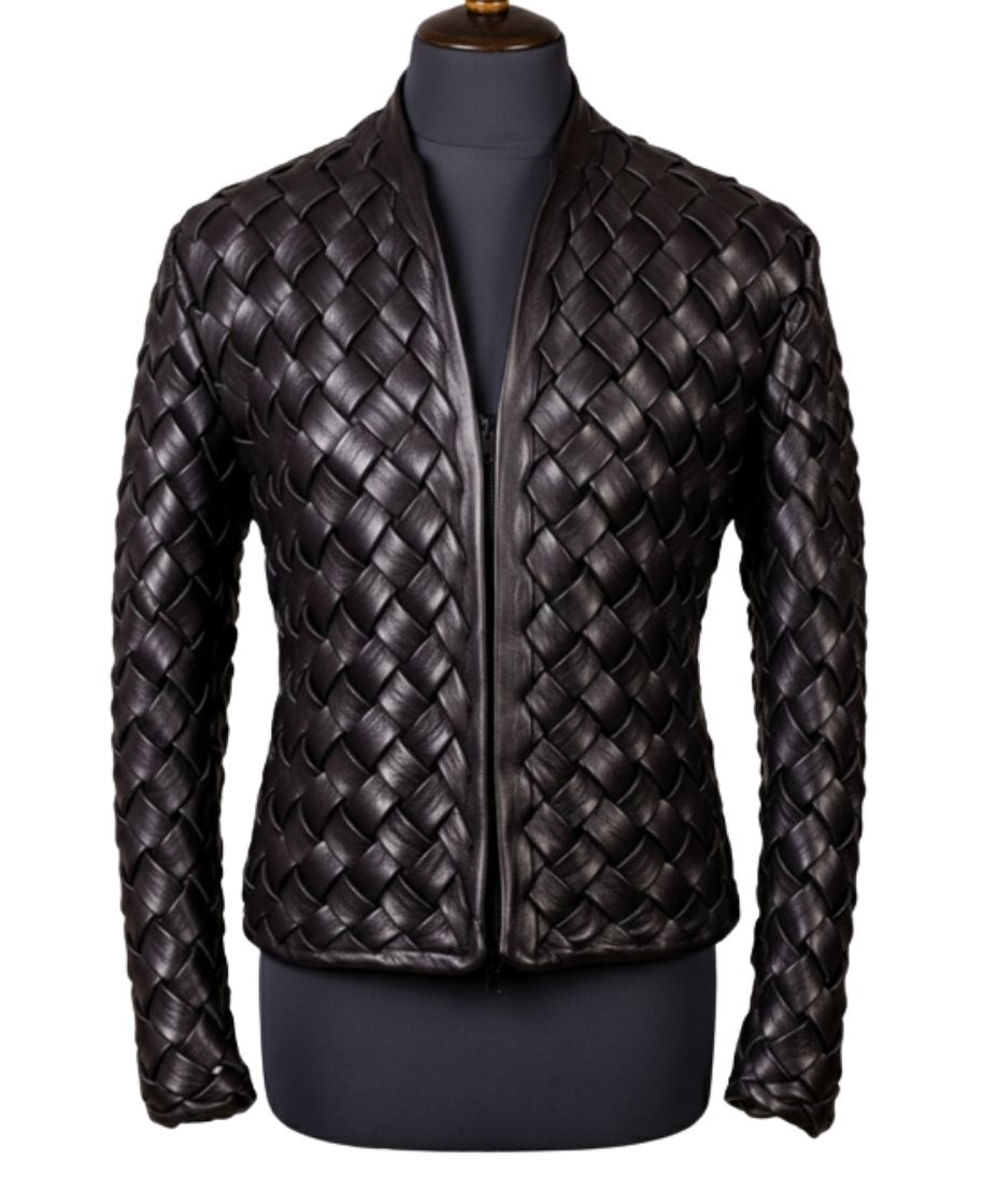 The buttery texture of the hand-woven sheepskin panels showcases a 100% handmade narrative. Specifically, each strip of Sheepskin is carefully interlaced by our master craftsmen. This technique creates a multidimensional surface that reacts beautifully to light. Furthermore, the garment construction emphasizes durability alongside aesthetic appeal. Consequently, the artisanal touch is visible in every stitch. Therefore, this jacket represents a pinnacle of technical leatherwork.