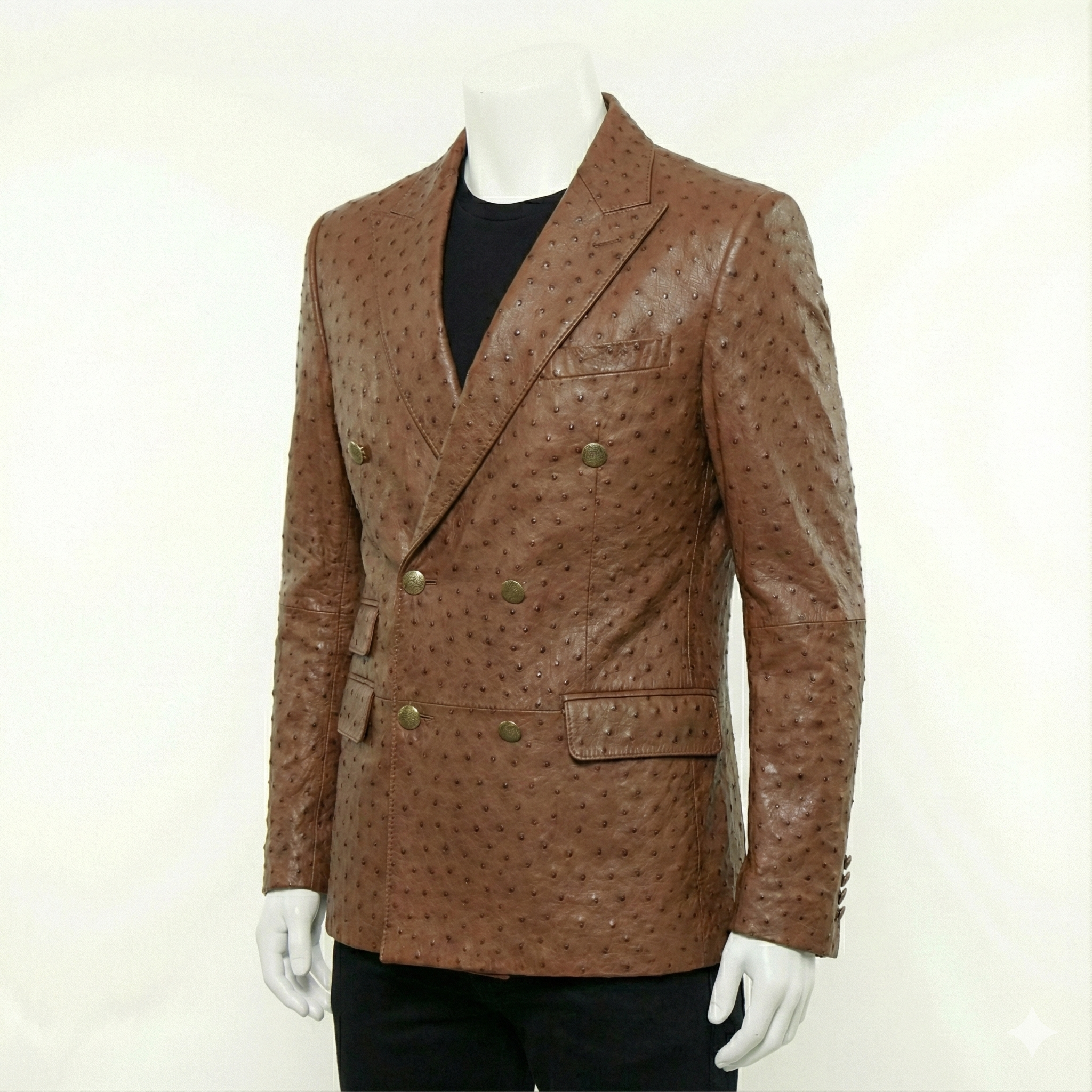 BROWN OSTRICH LEATHER COAT FOR MEN | LUXURY DOUBLE BREASTED