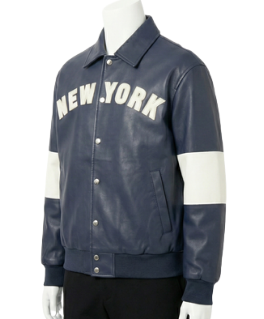 Specifically, the mens leather varsity jacket features high-shine silver hardware. This navy blue varsity jacket pairs well with modern streetwear. Furthermore, the men's varsity jacket offers a powerful profile. Consequently, the navy blue varsity jacket remains a staple of luxury. Moreover, the tailored fit ensures all-day comfort. Therefore, it remains an essential piece.