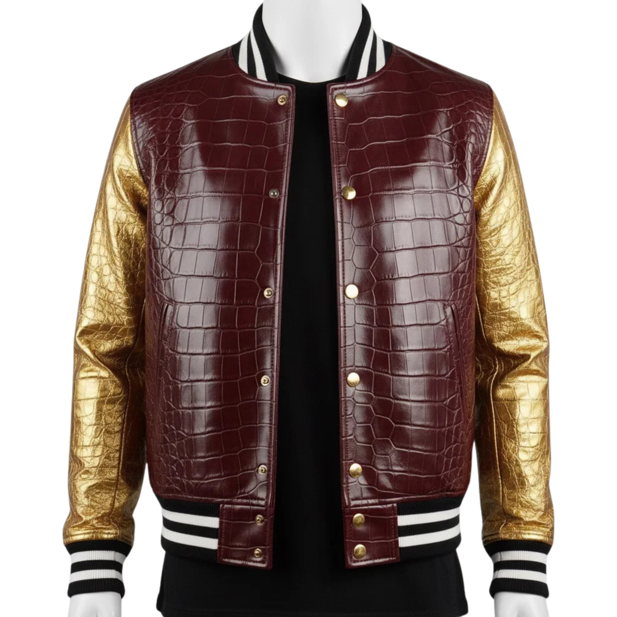 CROCODILE LEATHER VARSITY JACKET EXCLUSIVE HANDMADE DESIGN