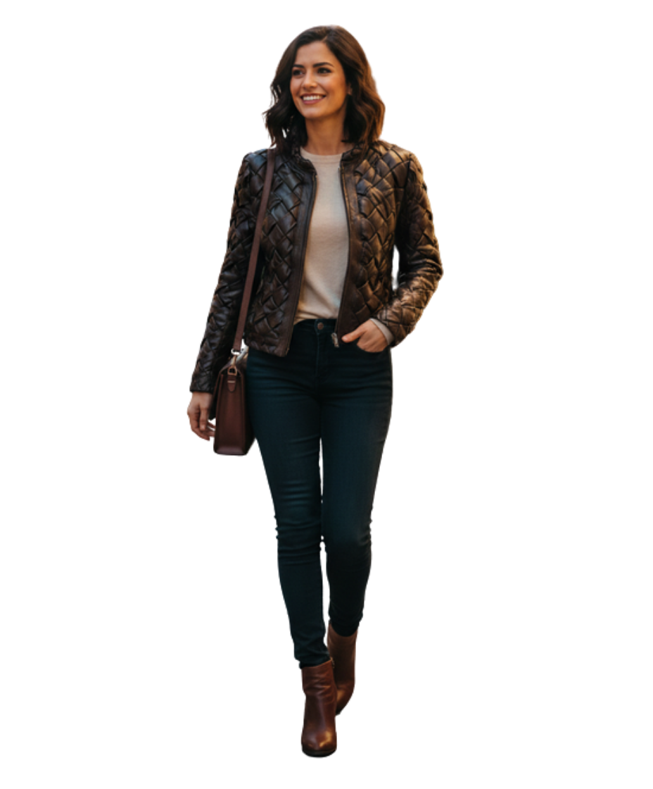 Custom Jackets USA offers high-end luxury at disruptive pricing. Specifically, this woven leather jacket provides an elite aesthetic. Our dark brown leather jacket women style ensures a second skin fit. Furthermore, this woven leather jacket represents superior artisan craftsmanship. Consequently, our dark brown leather jacket women design defines modern elegance. Therefore, you receive a timeless masterpiece today.