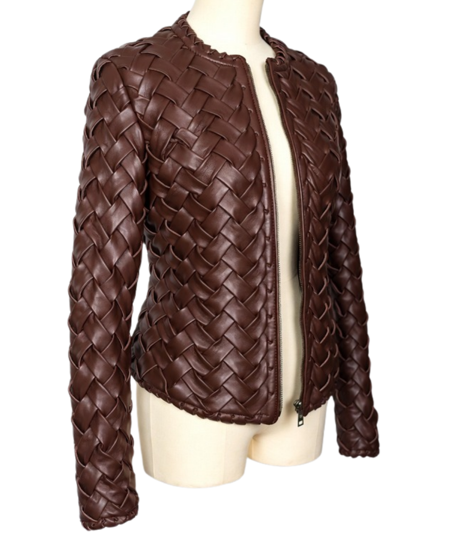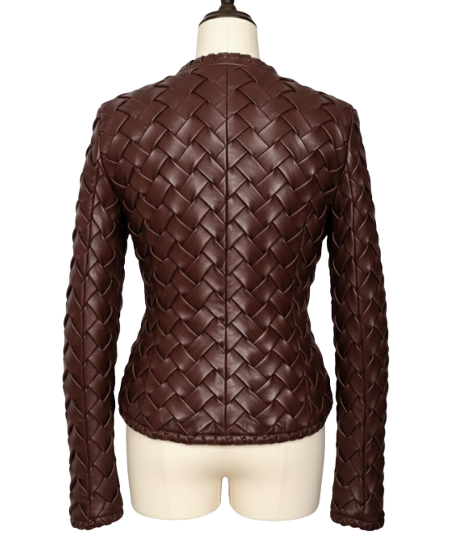 ESPRESSO WOVEN LEATHER JACKET FOR WOMEN | LUXURY HANDMADE