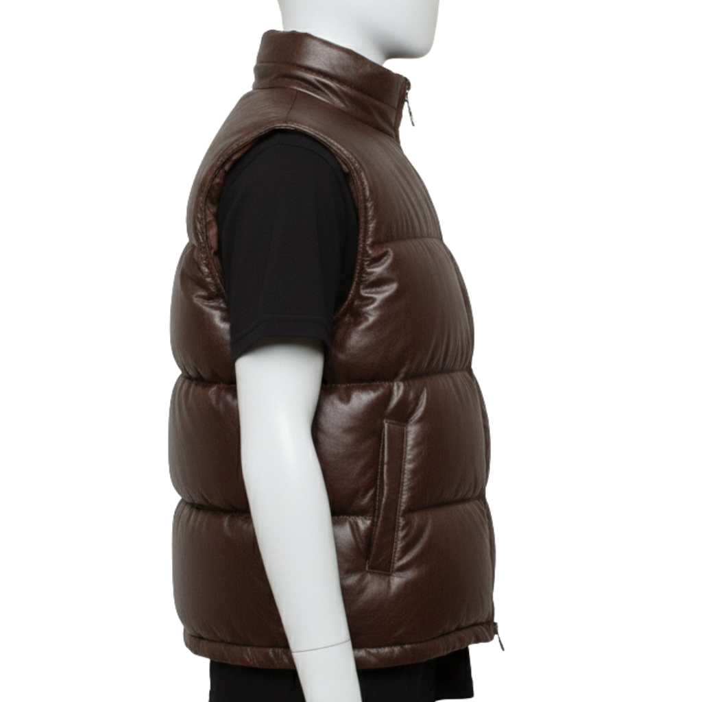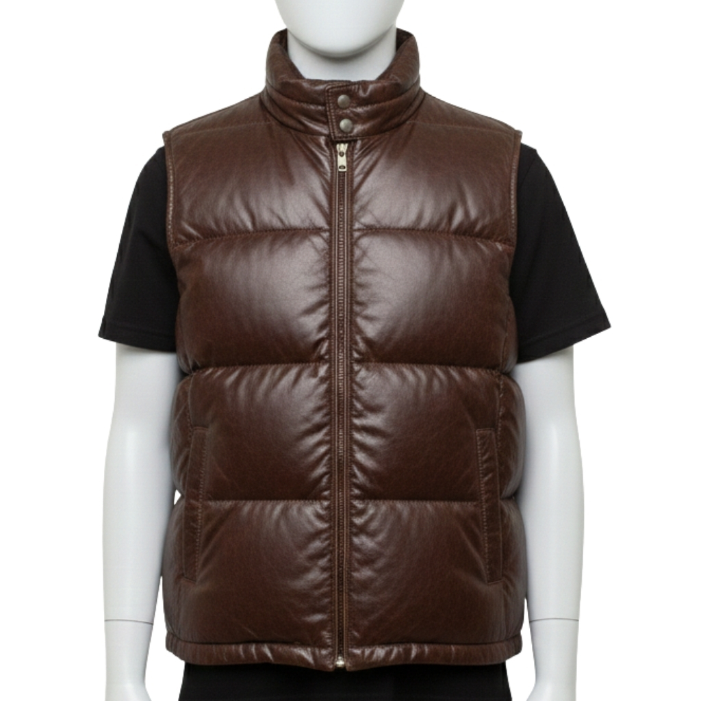 Our brand mission fundamentally transforms the high-end outerwear market. Consequently, we offer this full-grain leather puffer vest for only $600. While heritage labels often charge $10,000 for similar leatherwork, we prioritize your access to excellence. Furthermore, we eliminate retail markups to bring a world-class full-grain leather puffer vest directly to your wardrobe.