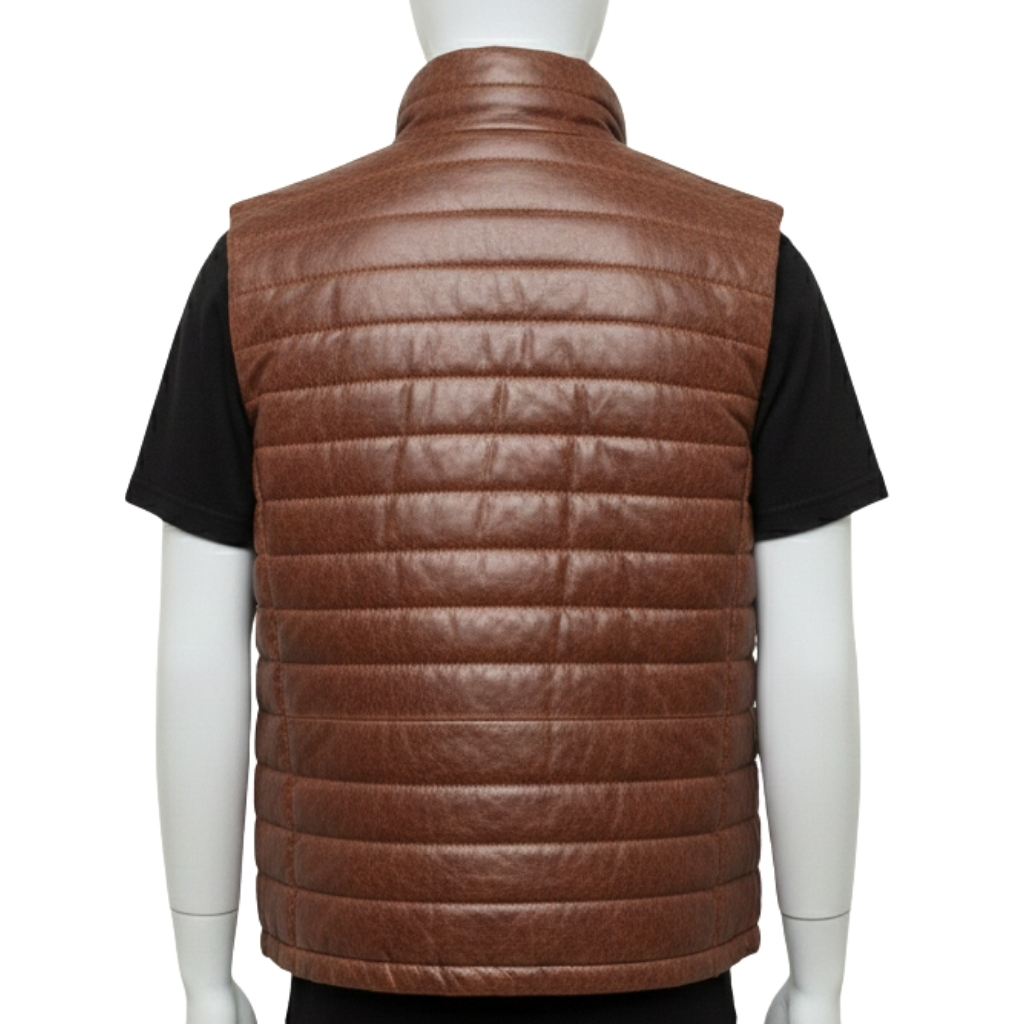 GENUINE LEATHER PUFFER VEST TOBACCO MICRO QUILT EDITION