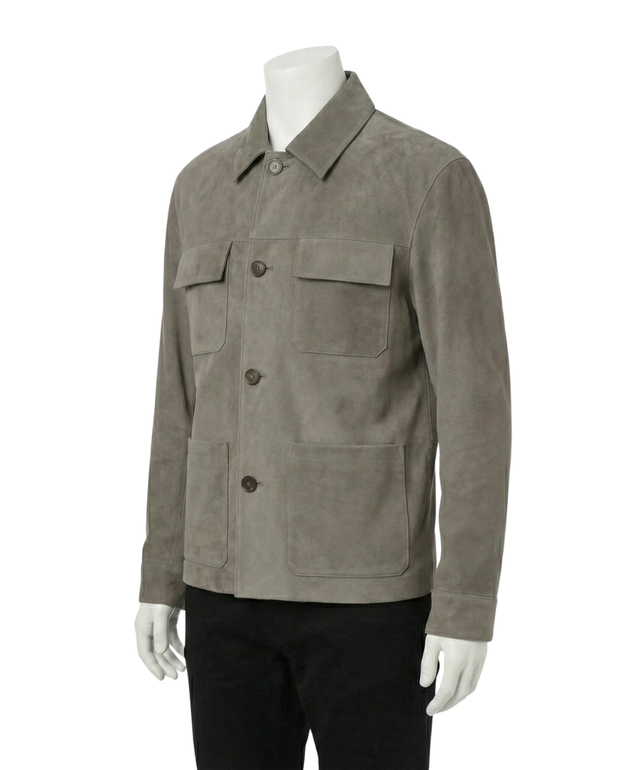 GREY SUEDE LEATHER JACKET EXCLUSIVE HANDCRAFTED DESIGN