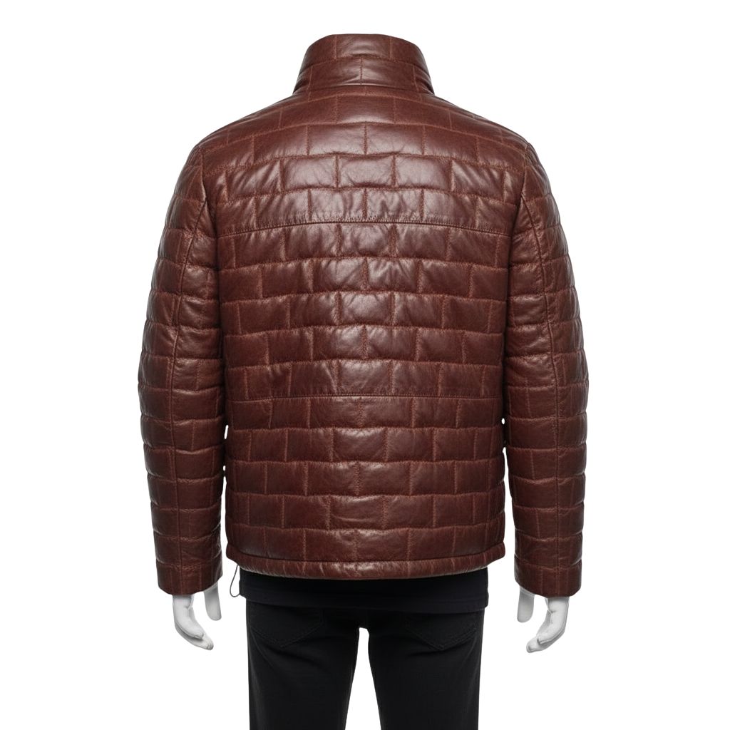 LEATHER QUILTED PUFFER JACKET MENS FASHION