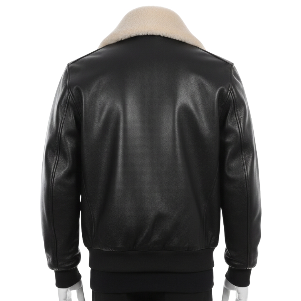 Custom Jackets USA builds each aviator mens black leather jacket piece by hand with great care. In addition, the contrast between the smooth black leather and the plush white shearling fur jacket collar creates a classic aesthetic. Because we use soft, top-grade skins, this black mens leather aviator jacket remains flexible and comfortable. Consequently, you own a rare masterpiece that stays stylish for a lifetime of wear.