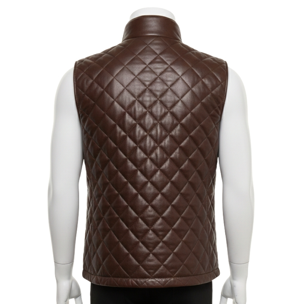 MENS LEATHER PUFFER VEST BROWN QUILTED EDITION