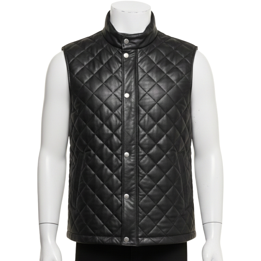 Mens Leather Puffer Vest - Elite Quilted Collection