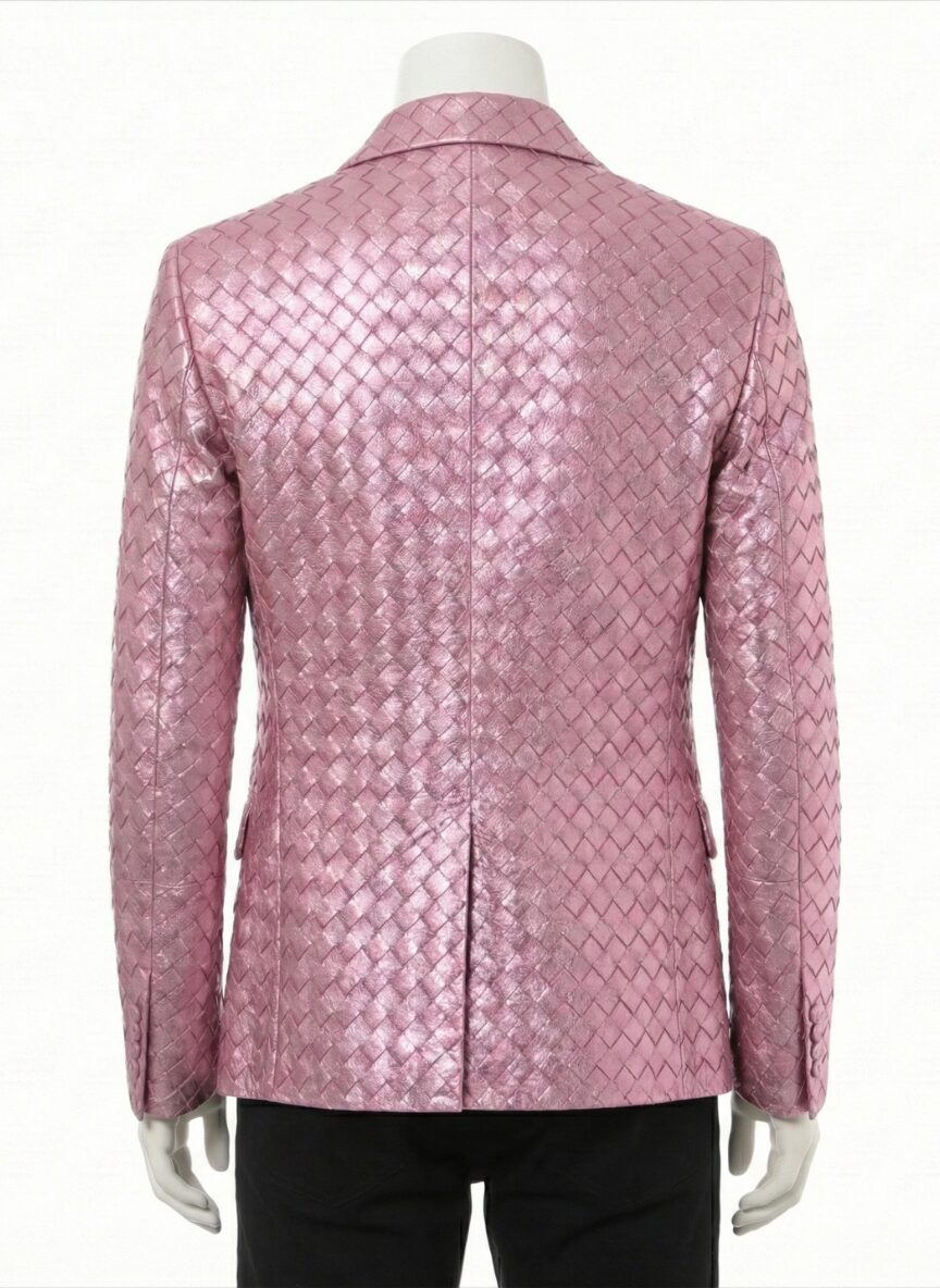 A luxury metallic pink woven genuine leather coat for men by Custom Jackets USA.