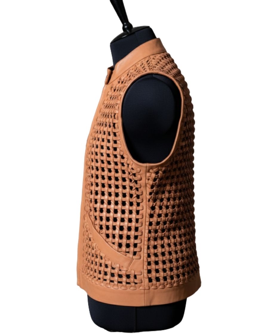 PASTEL PEACH WOVEN LEATHER ROUND NECK FASHION VEST WOMEN