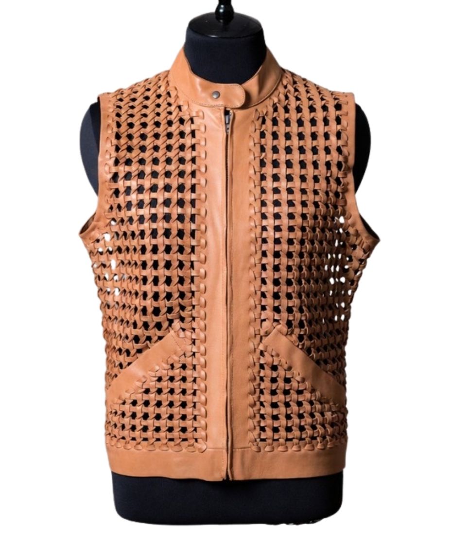 The soft pastel peach hue highlights the minimalist round neck silhouette and intricate hand-woven texture. Specifically, each strip of Full-grain leather is interlaced by hand. This process creates a unique and durable multidimensional surface. Furthermore, our master craftsmen ensure a 100% handmade narrative in every stitch. Therefore, the garment reflects a legacy of traditional skills. Consequently, the quality rivals the most famous fashion houses.